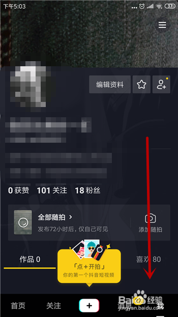 进入到抖音的小我本家儿页后下拉界面。