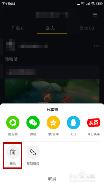 点击后就能删除这个转发的视频了,在动态里可以看到已经删除。