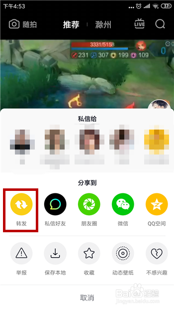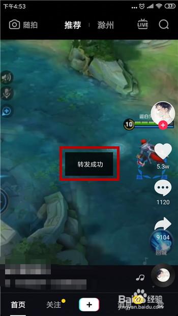 点击转发后会提醒我们转发当作功,这样就是转发的方式,但大师必然不要下载别人的视频再上传,不然就是侵权了。