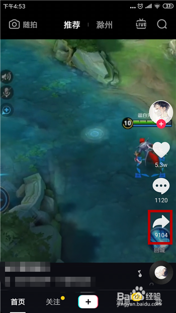 首先是可以转发的,因为在抖音里就有这个功能,打开想要转发的视频后点击右侧的【分享】选项。