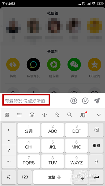 点击后会呈现转发的界面,需要输入我们的转发心得。