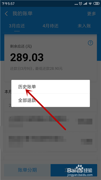 而想要查看其他月份的账单需要点击右上角的【更多】。