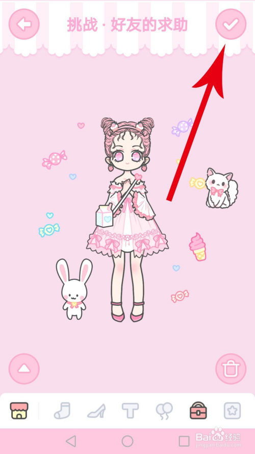这样我们就装扮完毕了,接下来要做的是点击“√”提交,这样就可以经由过程“老友的乞助”关卡了