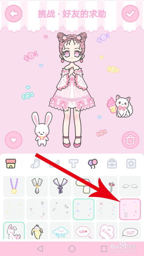 获得新的刘海、外衣和连衣裙后打开挑战关卡,然后找到“挑战 老友的乞助”并点击