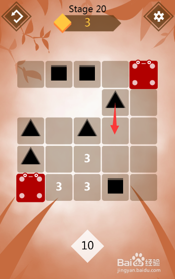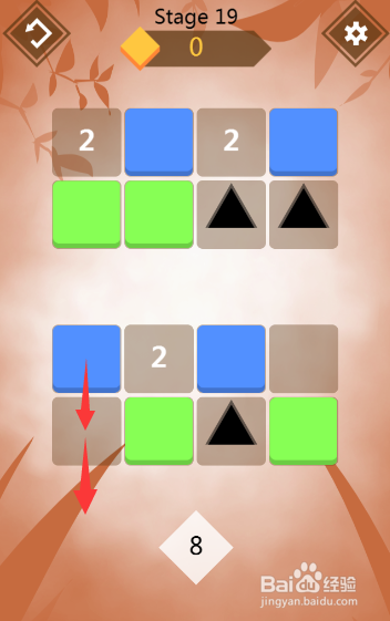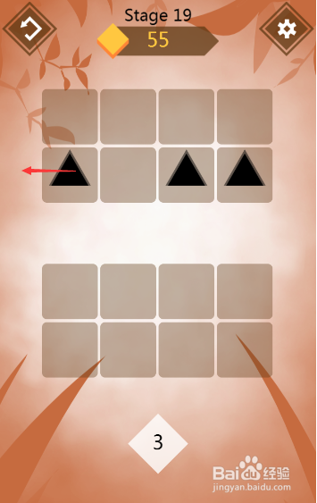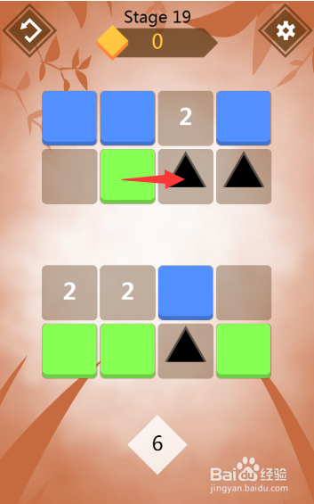 最后,将第二行第一列的黑色三角形左移,即可将黑色三角形匹配消弭,如图所示: