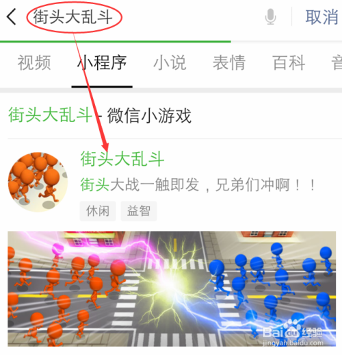 手机打开微信,搜刮输入【陌头大乱斗】点击小程序。