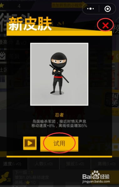 点击【试用】可以获得游戏人物的皮肤,到时会有15秒弹窗告白,要等告白竣事,才可以获得。