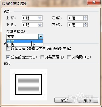在弹出的“边框和底纹选项”对话框中,将“质量依据”选项中选中“文字”→点击确定即可完当作。