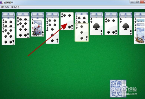 在第一排中在找到能按挨次摆列的纸牌,用鼠标点击进行移动,如下图