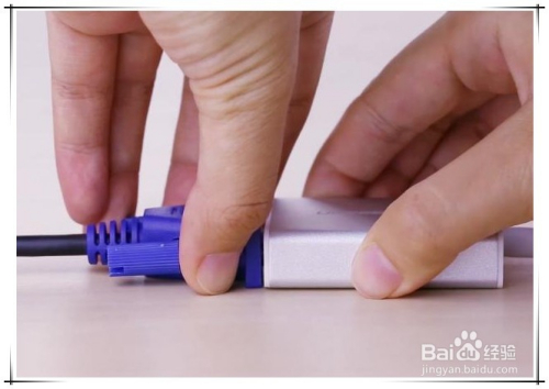 然后操纵这个转接设备,将电脑显示VGA接口和显示设备HDMI数据线接口毗连起来即可。