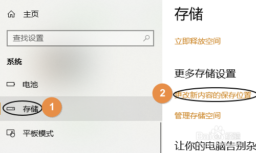 若是想要更改存储位置,那就要依次点击“起头”-“设置”,在设置的“系统”选项左侧点击“存储”-“更改新内容的保留位置”,然后更改新的照片和视频下面的位置即可;