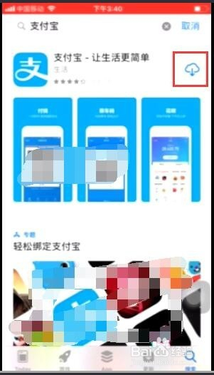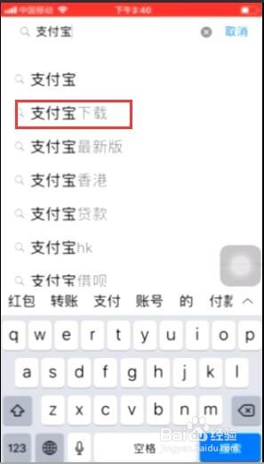 然后我们点击搜刮成果中的支付宝下载,如图所示;