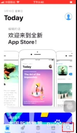 我们首先打开本身的手机然后进入到App store软件中,如图所示;