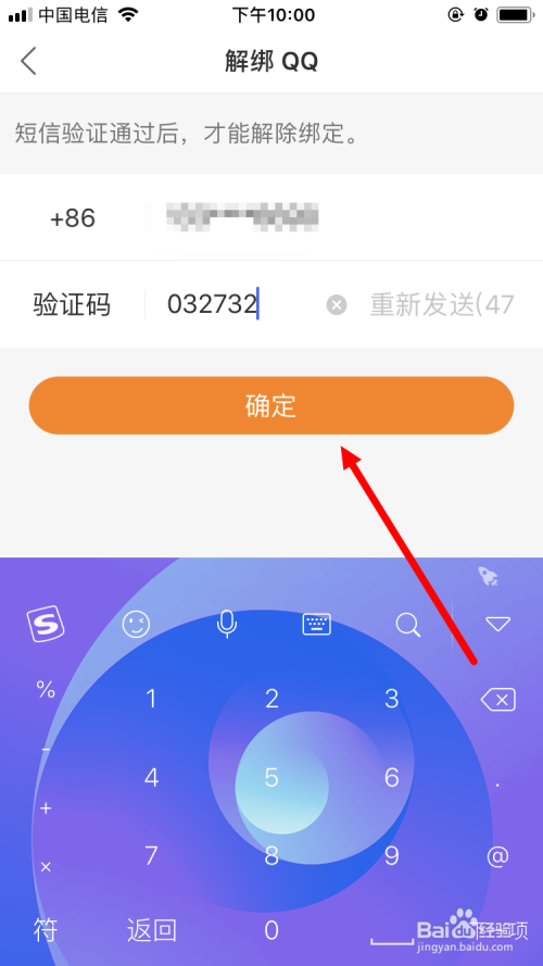 将收到的短信验证码填入,再点击 确定 。