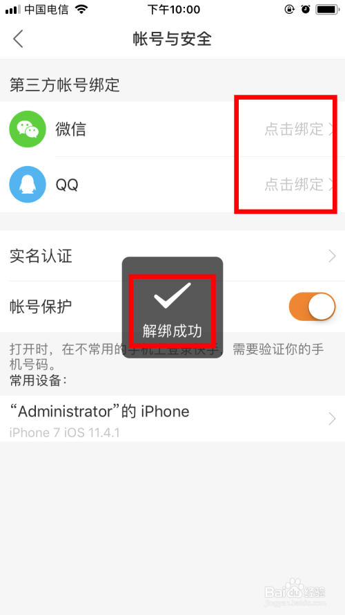 OK,微信也解绑当作功了。
