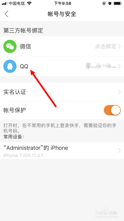 接着解绑QQ。同样的方式,点击 QQ 。