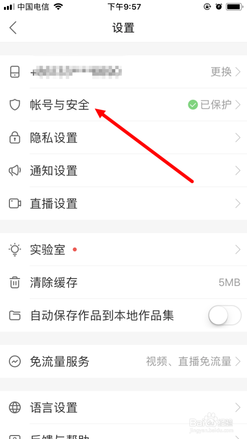 进入 设置 页面后,点击 账号与平安 。