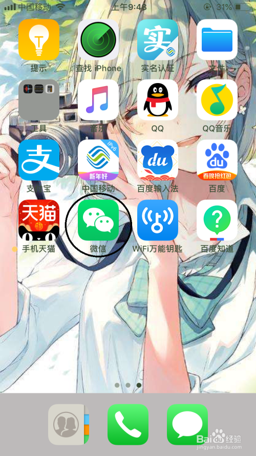 首先我们在手机上点击”微信“。