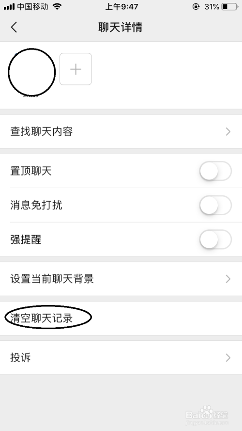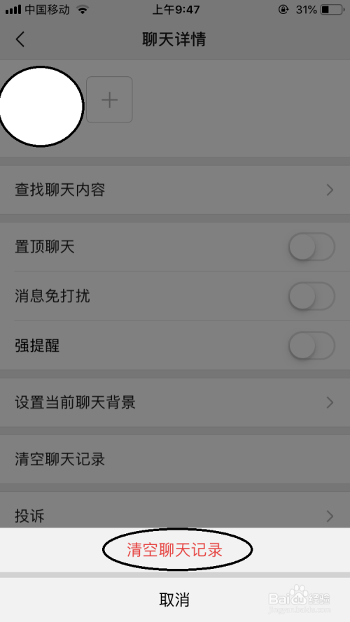 打开聊天详情界面中选项下点击”断根聊天记实“选项。