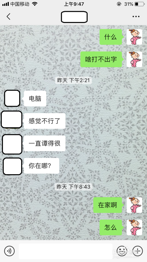 点击该与老友的聊天界面会记实聊天的内容。