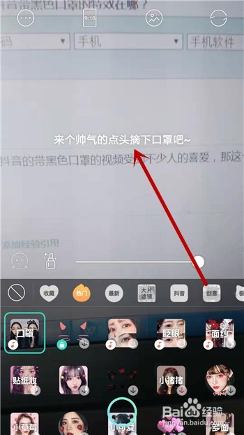 在贴纸中点击【口罩】特效。