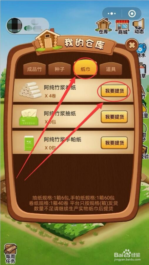 纸巾选项卡中,显示了你所出产的纸巾数目,点击我要提货按钮,就可以标的目的商家提货响应的纸巾。