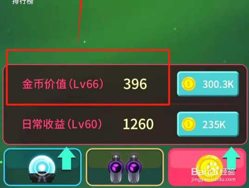 呈现金币价值和日常收益两个选项