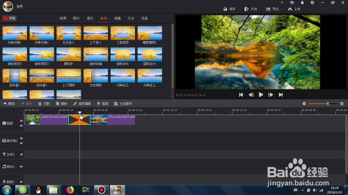 将这个“矩形渐变1结果”拖拽到两段素材的中心,形当作默认的转场结果