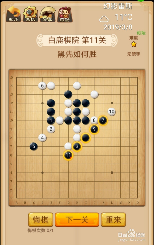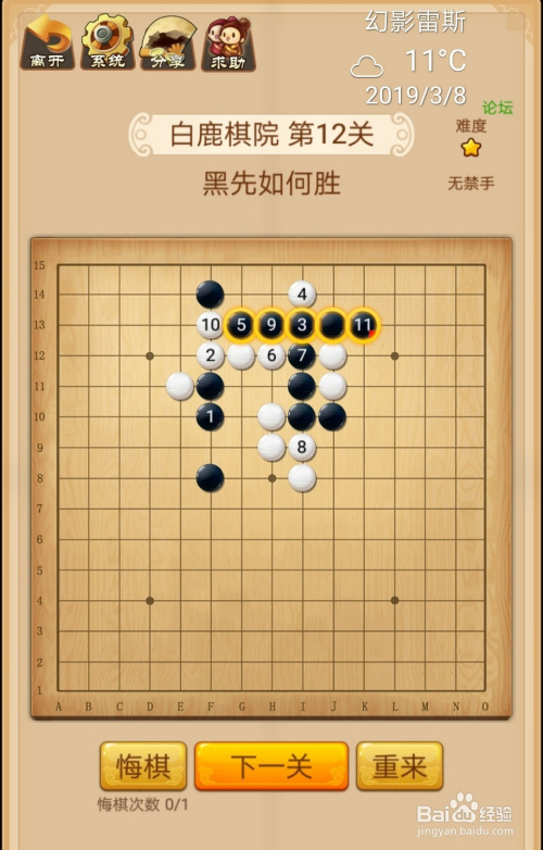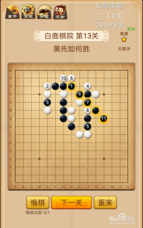 第11关按照下图中黑棋上的数字挨次下棋就能过关。