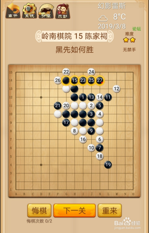 第15关按照下图中黑棋上的数字挨次下棋就能过关。