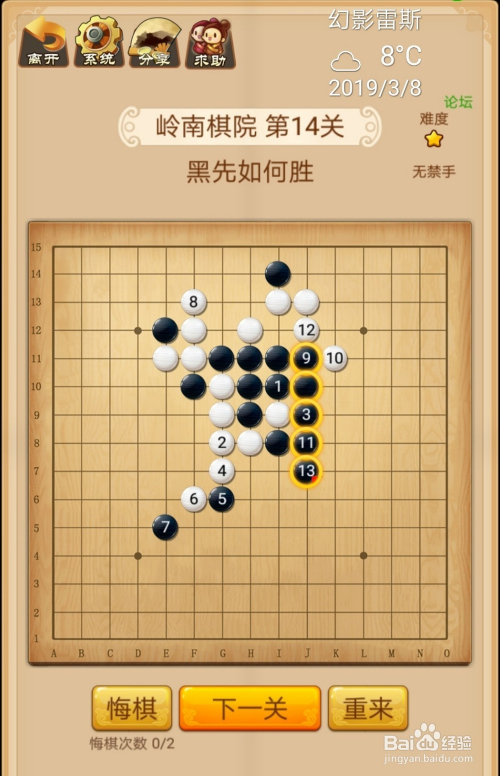 第14关按照下图中黑棋上的数字挨次下棋就能过关。