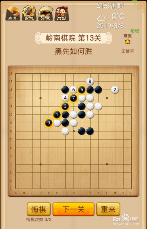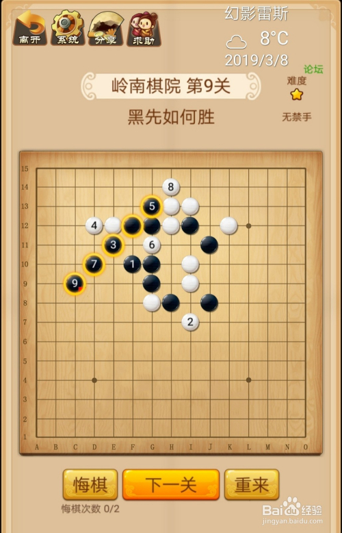 第9关按照下图中黑棋上的数字挨次下棋就能过关。