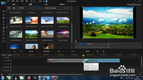导入之后的素材,点击+号导入到威力导演的时候线视频轨道上,包管首从头至尾相连