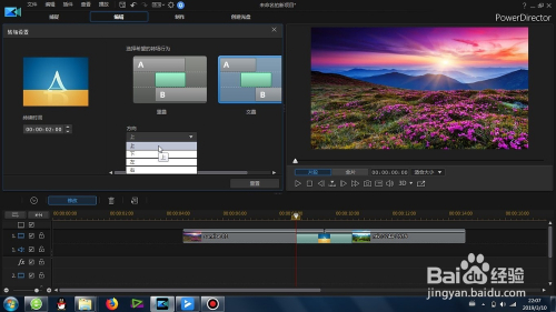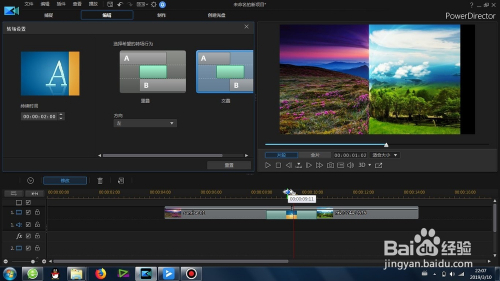 双击这个转场标识,可以打开其设置窗口,可以设置它的特效持续时候、转场的行为以及转场的偏向