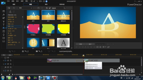 找到这个“威力导演波状结果”转场,并拖动到两段素材的中心,形当作默认的转场结果