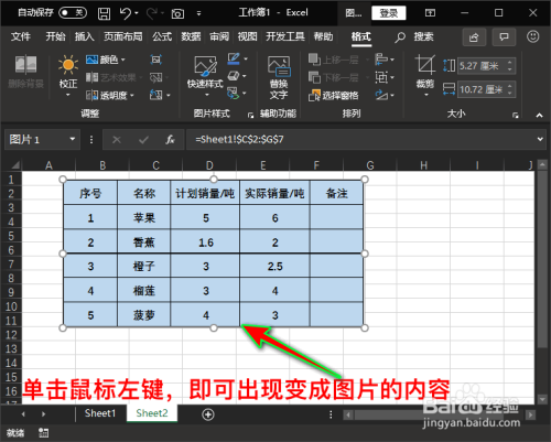 接着我们用鼠标点击别的一个Sheet工作表,进入到新的Sheet工作表中我们再单击鼠标左键,这样之前选中的内容就酿成图片了。如图所示: