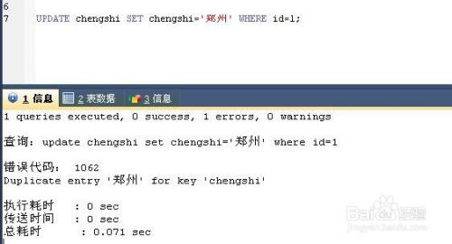 UPDATE chengshi SET chengshi='郑州' WHERE id=1;