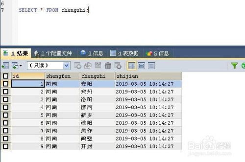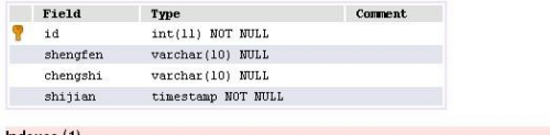 登录mysql,在test数据库中新建一个表,本家儿键是id,后面把chengshi字段设置为独一性: