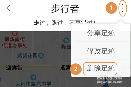 无论是轨迹仍是萍踪点,我们点击进入今后可以查看详情,好比下图一就是轨迹地图,若是不想让这些轨迹或者萍踪一向逗留在地图里,那么点击右上角的三个点图标,这样即可将其删除失落;