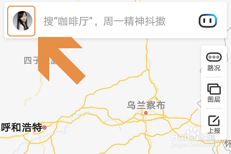 打开百度地图APP今后,我们首先就要点击首页面左上角的小我头像,见下图...这样就会切换到小我中间页面;