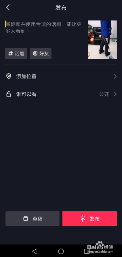 抖音下蛋特效视频弄好后,直接点击发布就可以分享了,如下图所示。