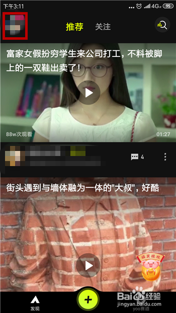 进入到yoo视频的首页后点击左上角的账号头像。
