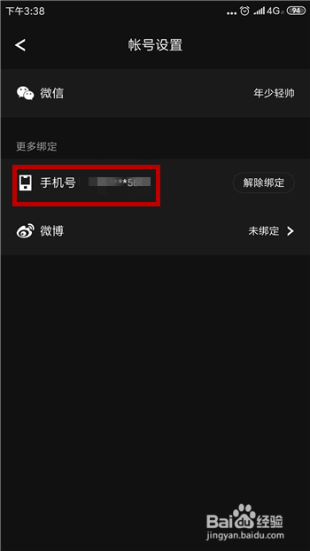 点击后就会提醒我们绑定当作功,返回到账号绑定界面可看到绑定的手机号。