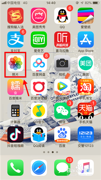叫醒苹果手机,然后在桌面上点击“照片”,进入图库。