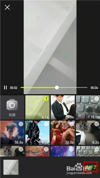 接着会打开手机相册,找到要参赛的视频并点击,选择好后点击【选好了】。