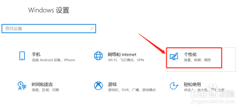 在Windows设置界面,点击“个性化”;