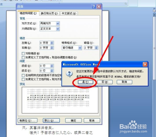 在新弹出的对话框。选择“是”单击,就可以把默认的对齐体例点窜当作“分离对齐”了