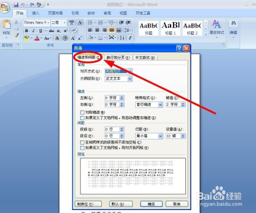 在弹出的“段落”对话框中,我们选择“缩进和间距”选项卡