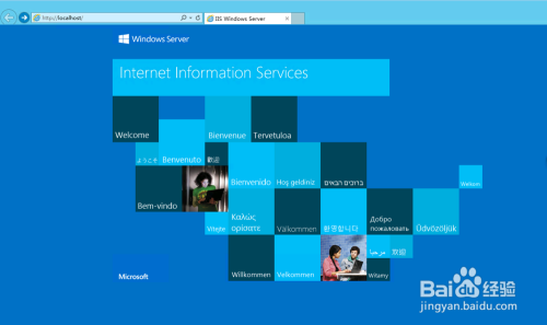 此时我们浏览IIS默认网站,会显示IIS的首页,后面就可以利用IIS进行Web应用的摆设和发布了,如下图所示: