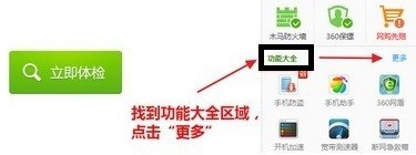 我们可以利用360平安中间来恢复,首先我们打开360平安中间,然后点击功能大全中的更多。